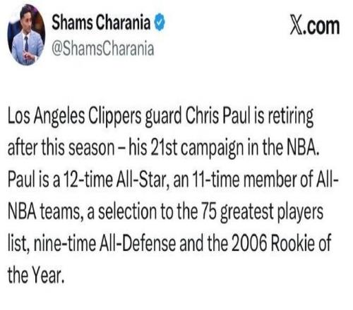 只是保罗已经在对阵黄蜂的比赛之前,他通过社媒宣布:“回到北卡州……多么精彩的一段旅程……依然有许多不舍……非常感激这最后一程。”保罗确认本赛季是他生涯最后一个赛季。