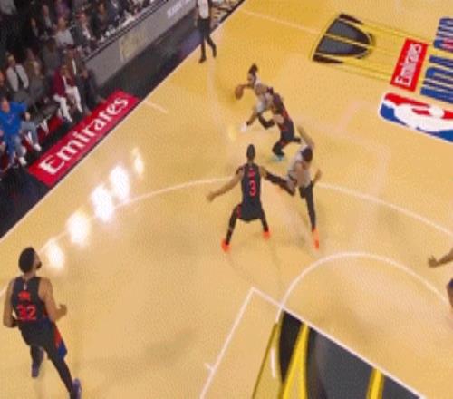 首先他在防守端,光是站着就是个威胁