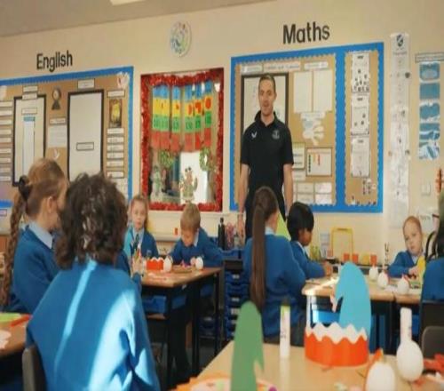 太阳报:格拉利什走进校园,为一位经历坎坷的小球迷送礼物